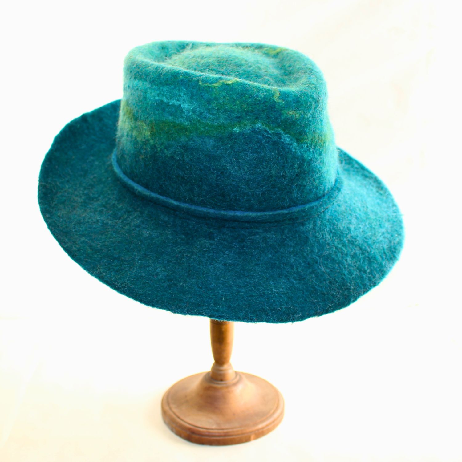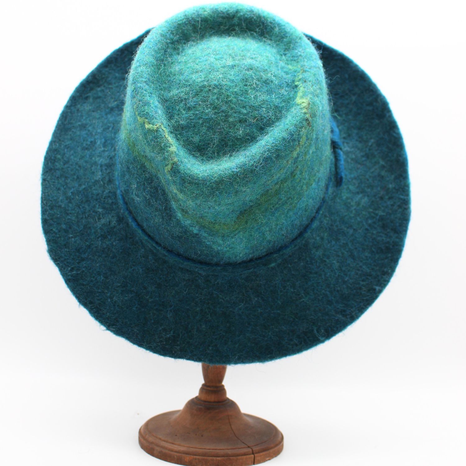 100% en feutre de laine. La matière laisse perler l’eau.