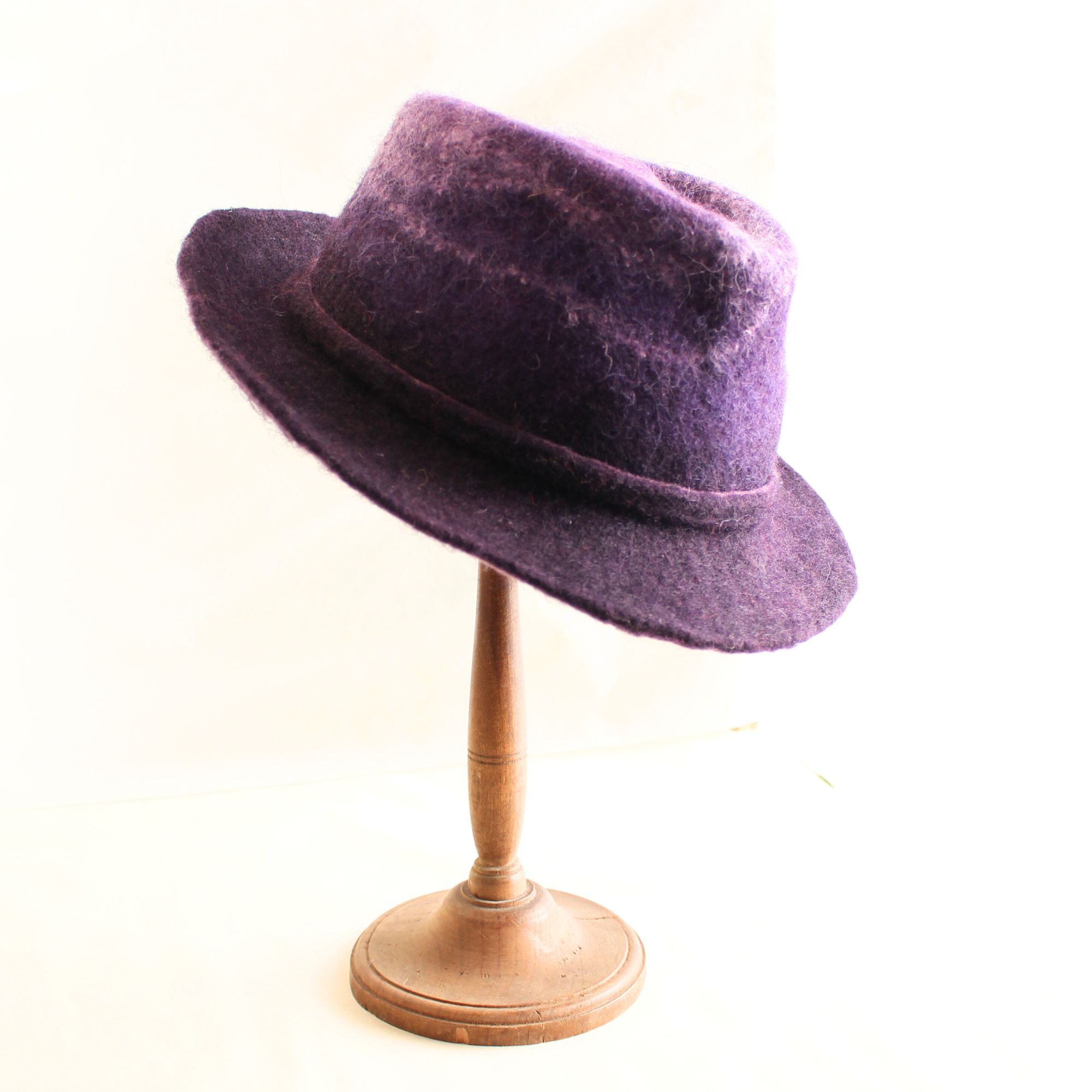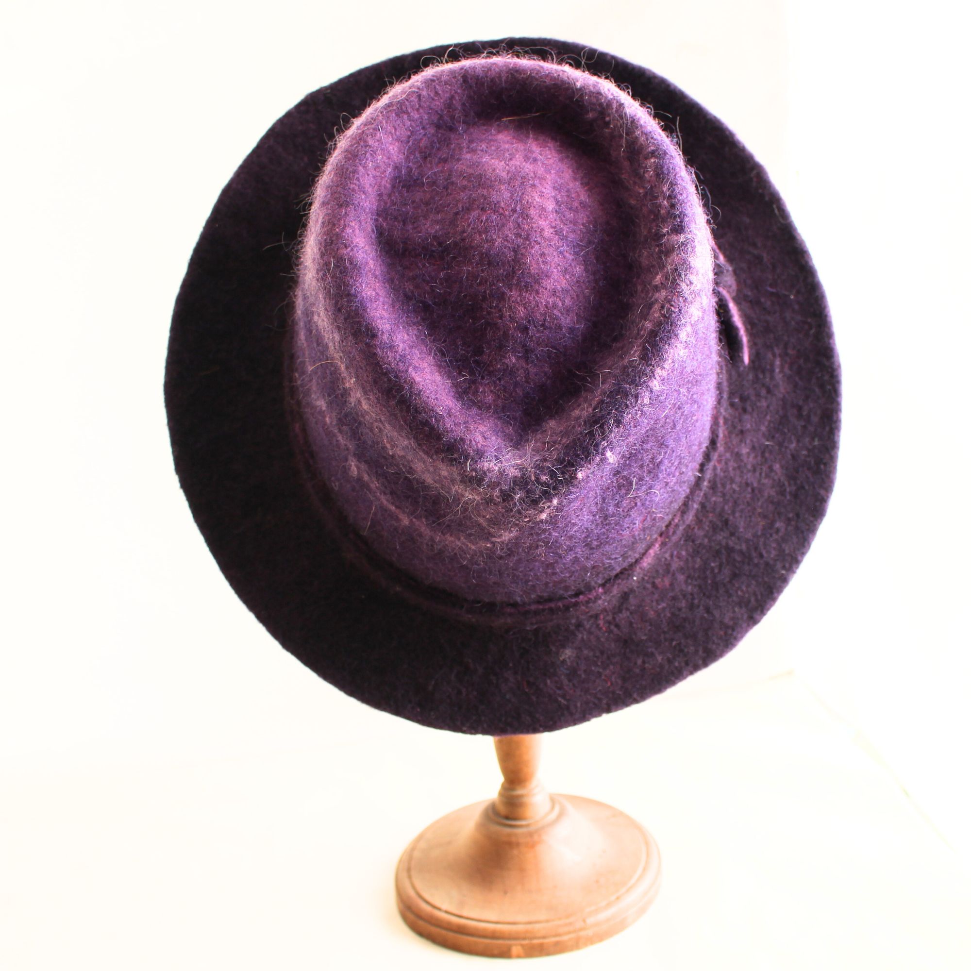 Bonjour ! Je suis le Chapeau Violet Dégradé, unique par ma teinte envoûtante qui joue sur des nuances élégantes. En feutre de laine fait main, je brave la pluie, le soleil et le vent pour protéger et sublimer celui qui me porte.